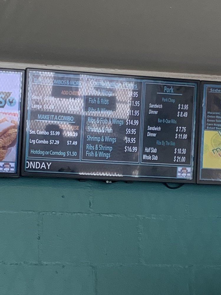 Indulge in their signature offerings, such as the 6 Piece Shrimp or the Tilapia Dinner, both showcasing perfectly seasoned, crispy goodness. The Combination Plates, like Fish & Wings and Fish & Ribs, provide a satisfying way to enjoy multiple flavors in one meal.